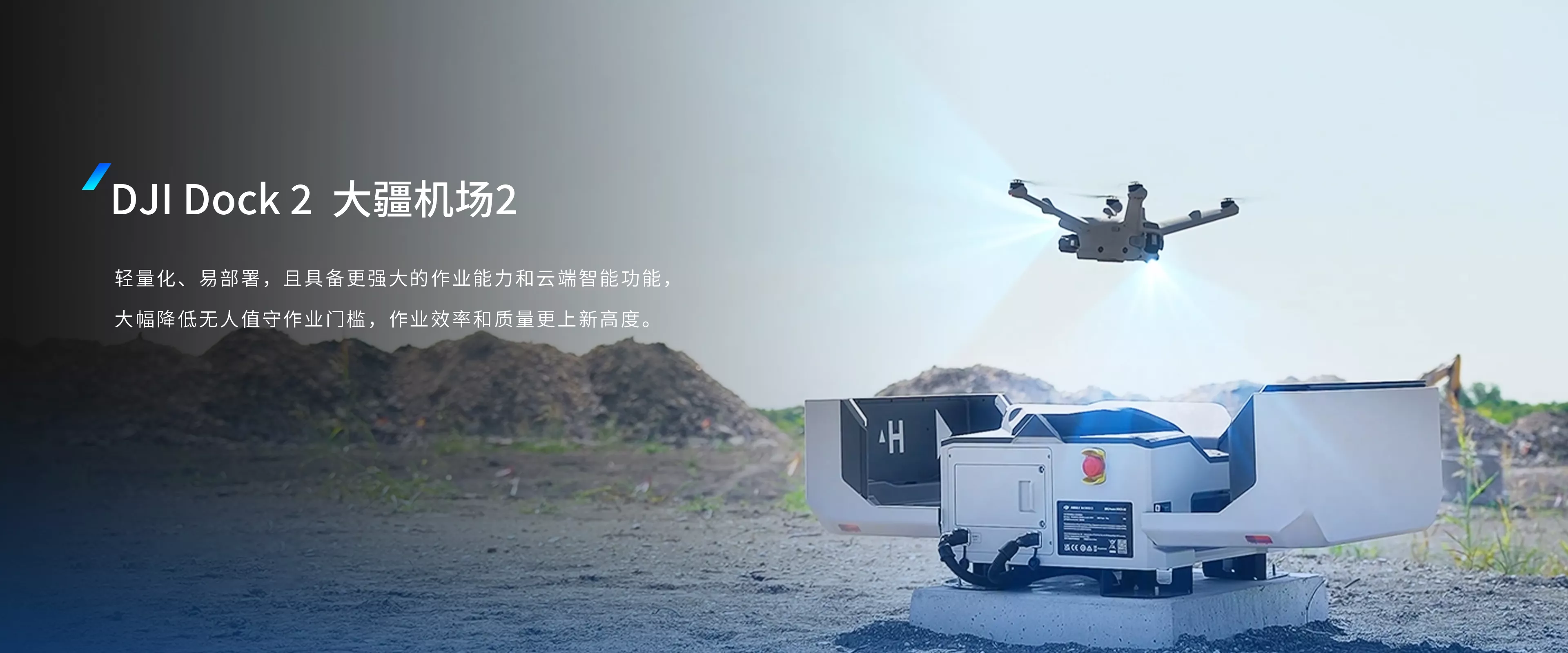 高性能小型无人值守平台大疆机场 2 配备专有 Matrice 3D/3TD 无人机,不仅轻量化、易部署,且具备更强大的作业能力和云端智能功能,大幅降低无人值守作业门槛,作业效率和质量更上新高度。