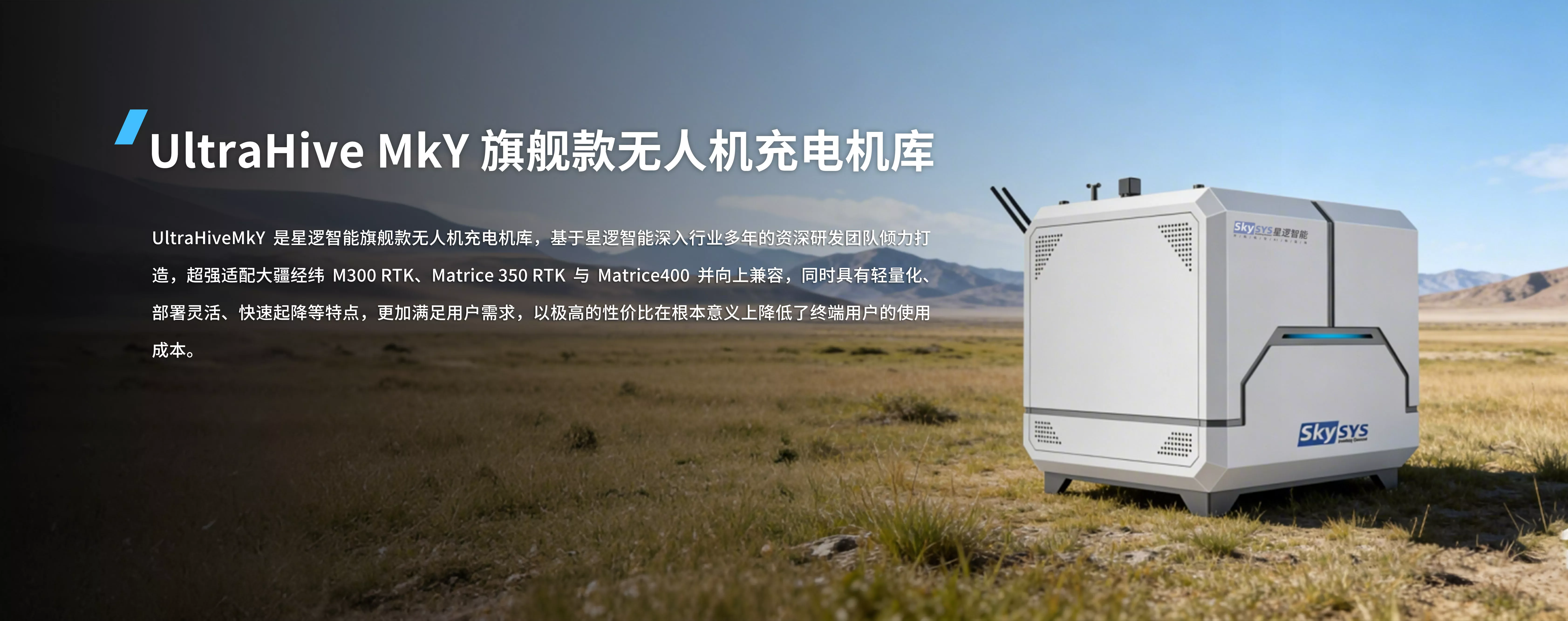 UltraHive® MkY是星逻智能旗舰款无人机充电机库,基于星逻智能深入行业多年的资深研发团队倾力打造,具有轻量化、部署灵活、快速起降等特点,更加满足用户需求。同时以极高的性价比在根本意义上降低了终端用户的使用成本。